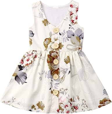 Puseky Robe Sans Manches Florale Pour Bebe Fille Pour Enfant Robe Decontractee A Col En V Pour Enfant En Bas Age Amazon Fr Vetements Et Accessoires