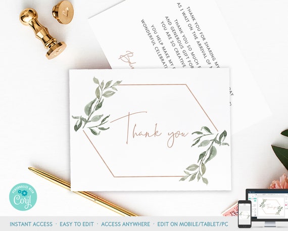 Greenery Baby Shower Thank You Card Printable Template Green Baby Shower Folded Thank You Note Bridal Shower Thank You Printable Idb026zl By Inlove Digital Design Catch My Party