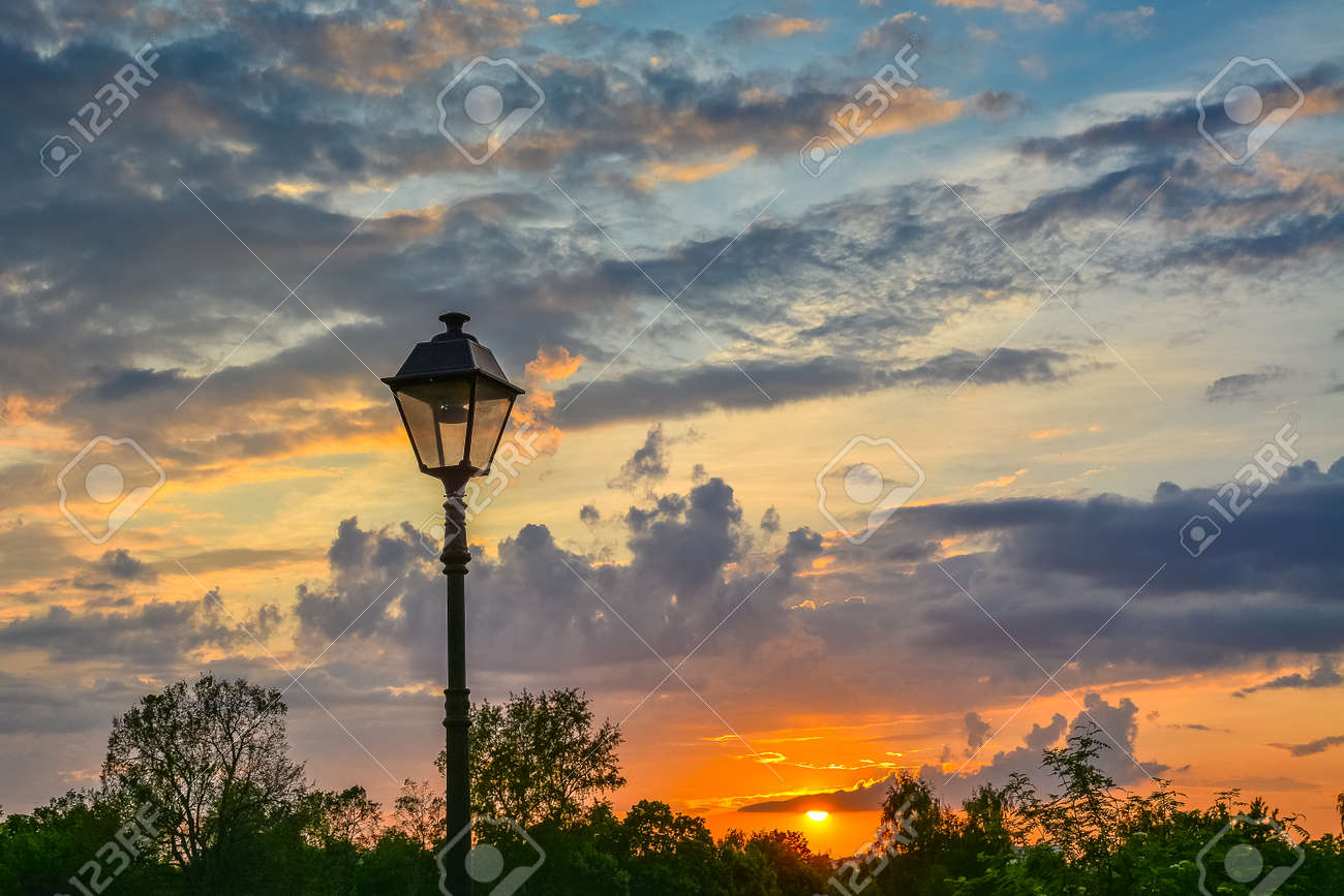 Immagini Stock - Lanterna In Stile Retrò Su Uno Sfondo Di Un Tramonto Colorato. Image 80785645.