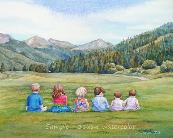 Custom children Large watercolor painting of child from photo | Etsy